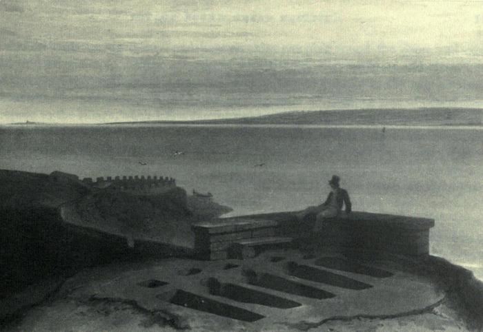 The sharply defined outer edge of the pour is quite visible in Daniell Williams' 1813 engraving. The sharp edges of each Heysham rock tomb also add a 'freshly poured concrete' look to the image.