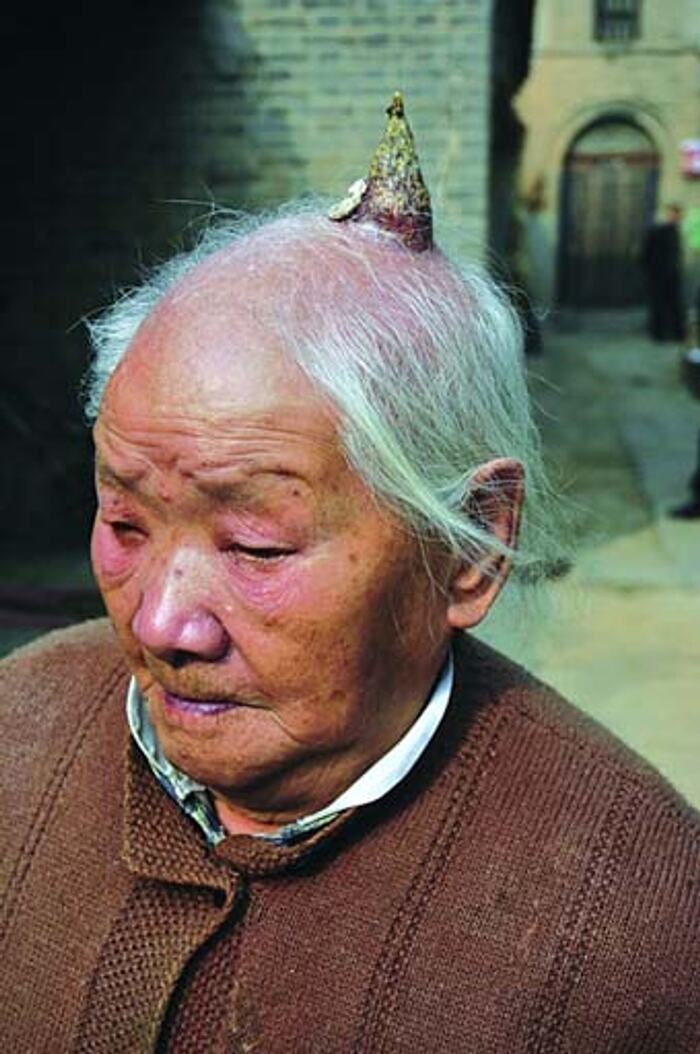 East Asian female, single horn. Source: 91 Year Old Woman With Horns Growing Out of Arm