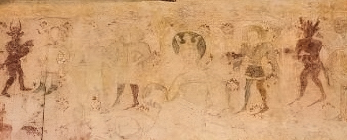 ...a male figure armed with bow and arrows, anthropomorphic apart from having a bull’s horns and tail, and with long eyes.