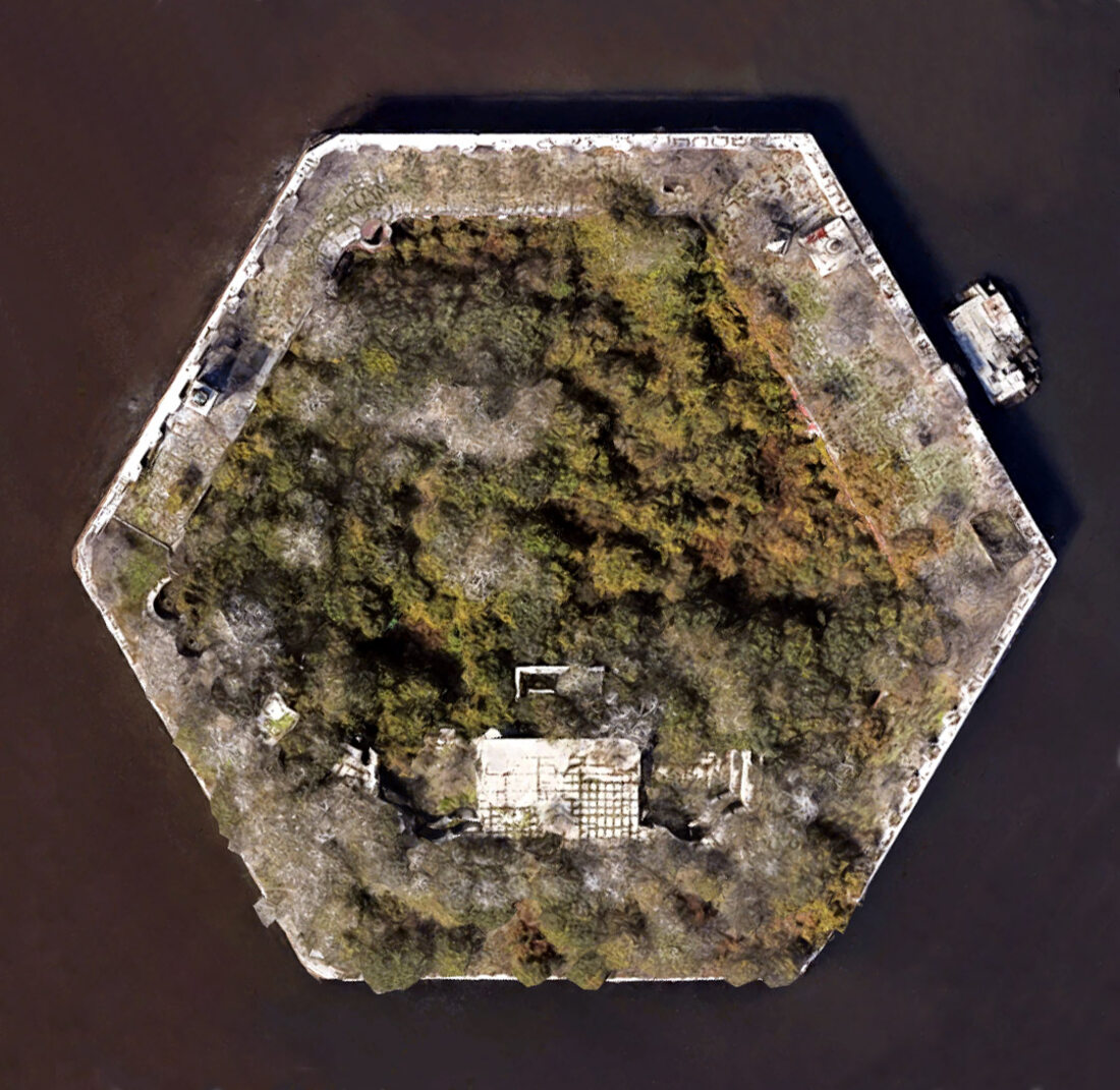 Polygonal shapes at the centre of star forts are the remains of thick, earth embankments faced with stone:
