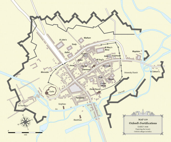 This plan shows just the outer edge of Oxford's ramparts. Earlier plans show its curtain walls were much thicker.